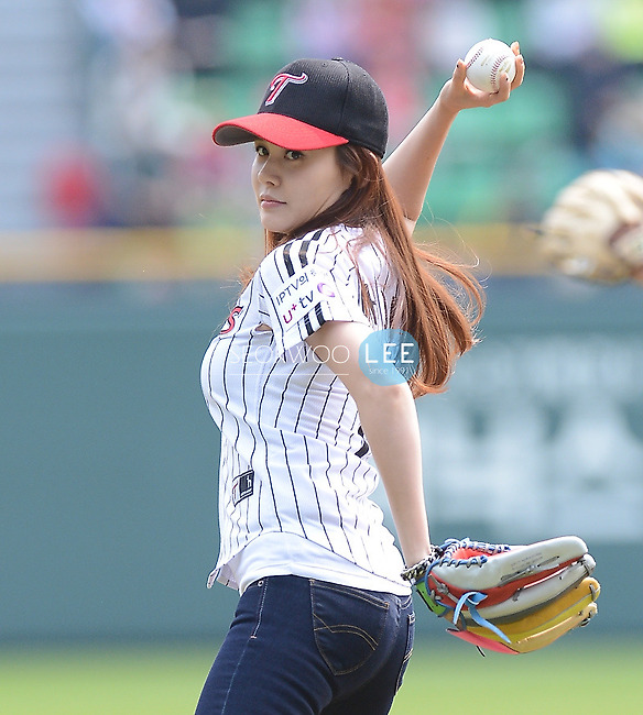 오늘은 걸그룹 레인보우 김재경이 시구를 했습니다.